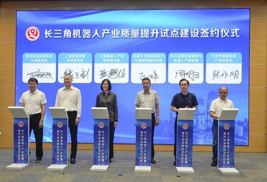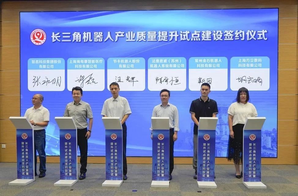 会议现场,各方代表共同签署了长三角机器人产业质量提升合作协议。机器人产业是衡量国家科技实力和高端制造业水平的重要标志,对实现经济社会高质量发展具有重要战略作用。为落实长三角一体化发展国家战略和市委市政府实施方案的要求,普陀区联合机器人功能型平台牵头开展长三角机器人产业质量提升工作。