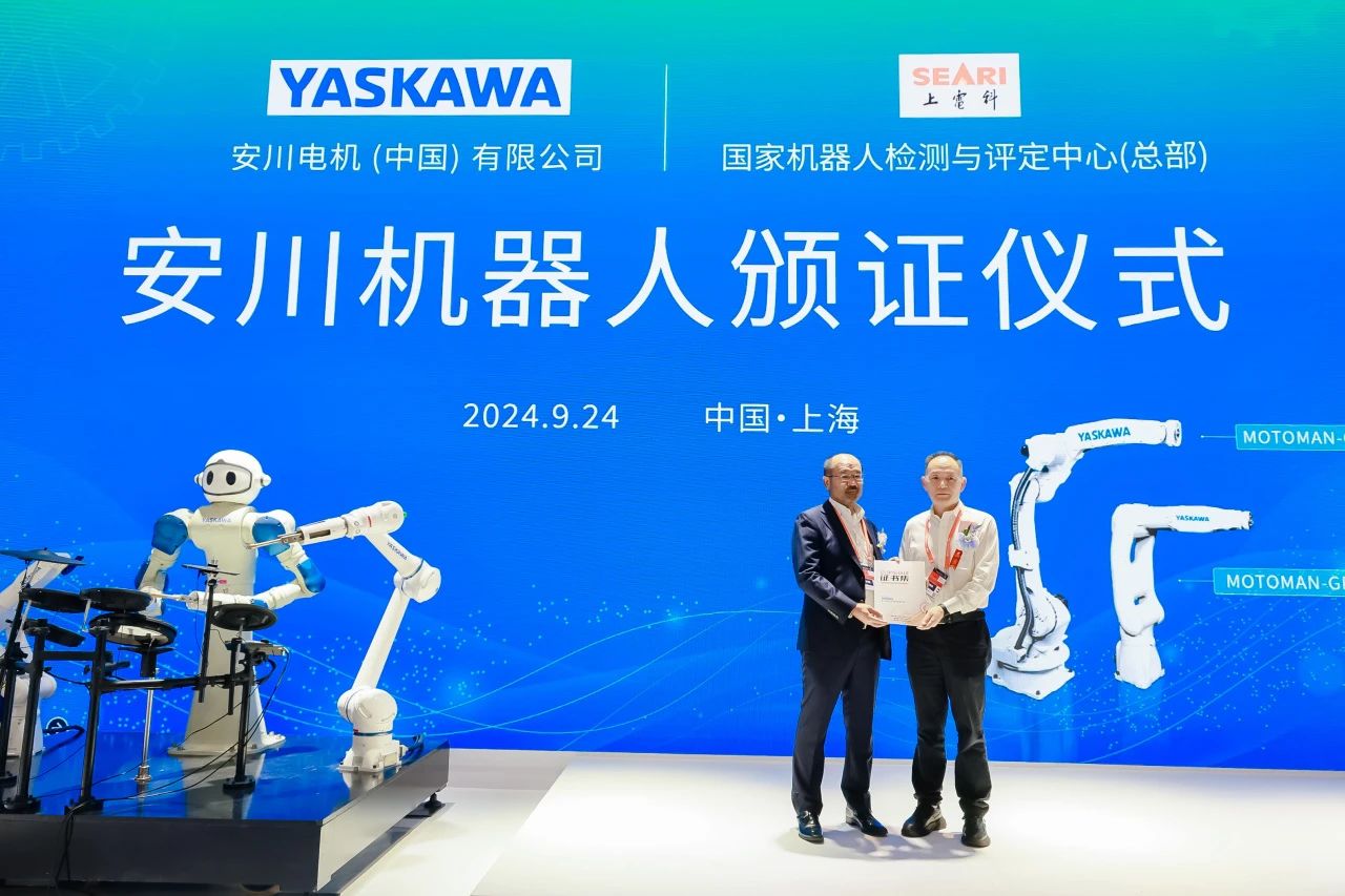 9月24日,2024中国国际工业博览会盛大开幕。开展首日,国家机器人检测与评定中心(总部)【简称:国评中心总部】为安川电机(中国)机器人有限公司【简称:安川】GP25及GP7两款产品颁发机器人洁净级认证证书。