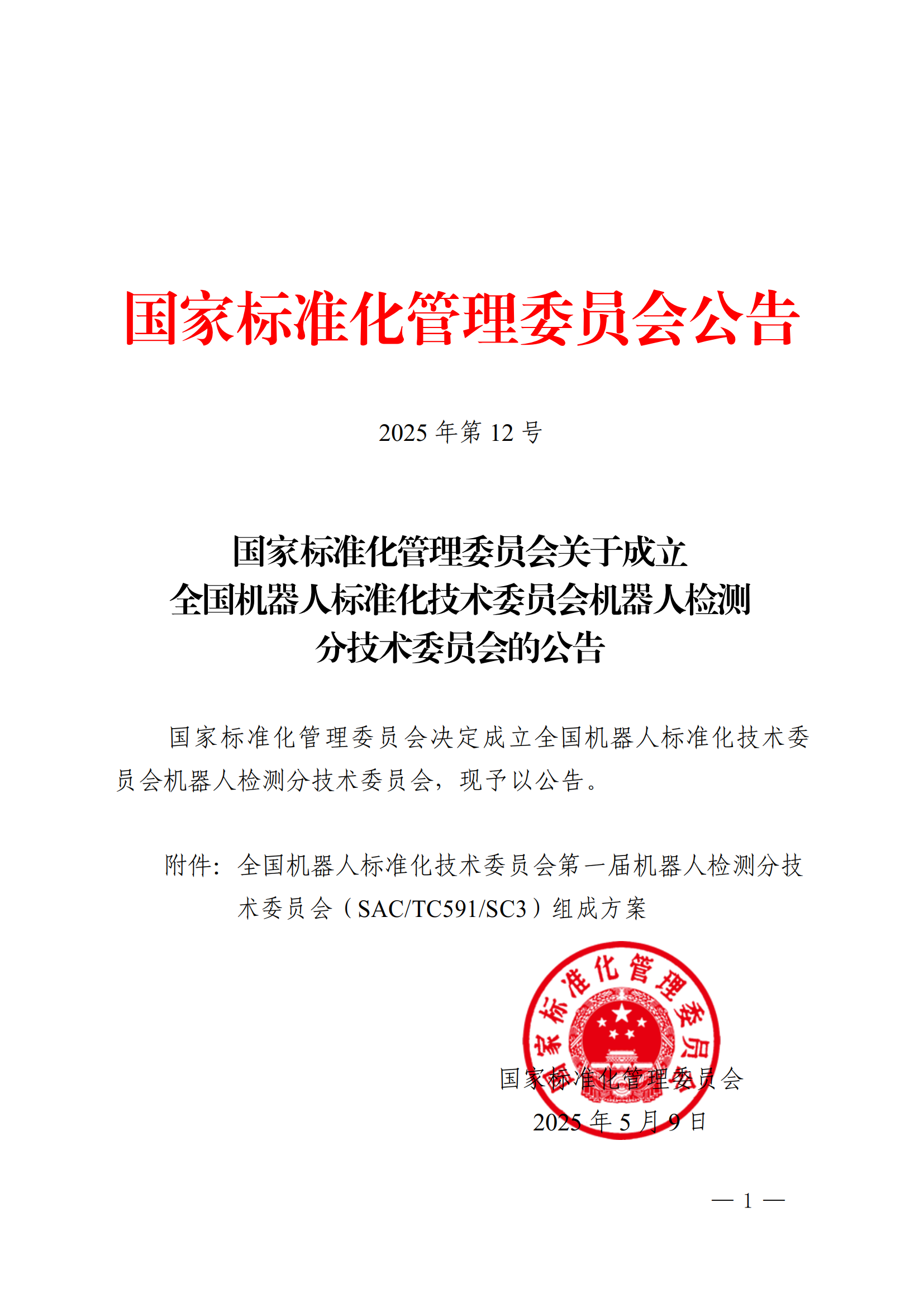 5月9日,国家标准化管理委员会发布《关于成立全国机器人标准化技术委员会机器人检测分技术委员会的公告》,决定成立全国机器人标准化技术委员会机器人检测分技术委员会(以下简称:分技术委员会),主要负责全国机器人检测与评估领域标准化工作,秘书处由上海电器科学HTH.COM-华体会承担,我院专家邢琳任委员兼秘书长。