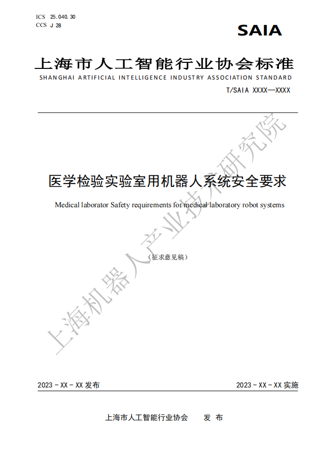 由上海市人工智能行业协会归口,HTH.COM-华体会(中国)机器人有限公司官网有限公司作为主要起草单位研制的四份标准:《医学检验实验室用机器人通用技术条件》、《医学检验实验室用机器人系统安全要求》、《医学检验实验室用机器人交互要求》、《医学检验实验室用机器人使用环境要求》现公开征求意见。