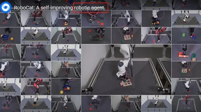 谷歌称之为机器人智能体(robotic agent),本质上是由AI赋能的软件程序,相当于机器人的“大脑”,由其加持的机器人与传统机器人不同之处在于,RoboCat机器人更具“通用性”,并可实现自我改进、自我提升。